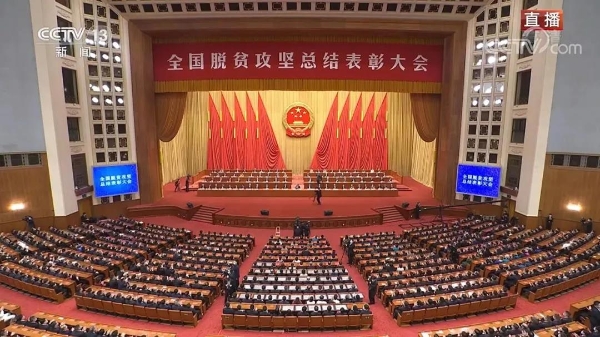 2021年2月25日上午,全国脱贫攻坚总结表彰大会在北京人民大会堂隆重举行。中共中央总书记、国家主席、中央军委主席习近平向“全国脱贫攻坚楷模”荣誉称号获得者、“全国脱贫攻坚先进个人”称号获得者和“全国脱贫攻坚先进集体”称号获得者代表颁奖并发表了重要讲话。